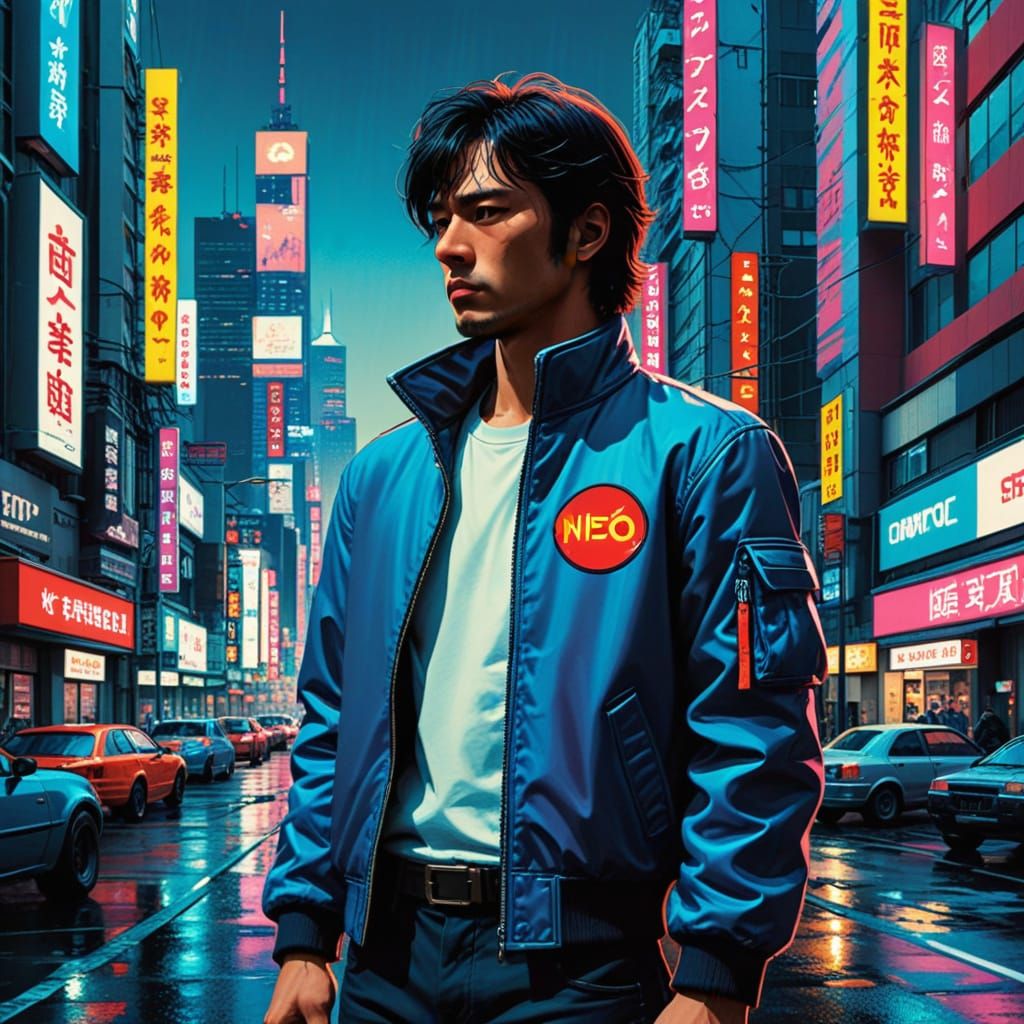This image shows a futuristic city with a blend of neon lights, metallic surfaces, and retro-futuristic elements. A pop art-inspired aesthetic dominates the scene, creating a visually striking and immersive experience.