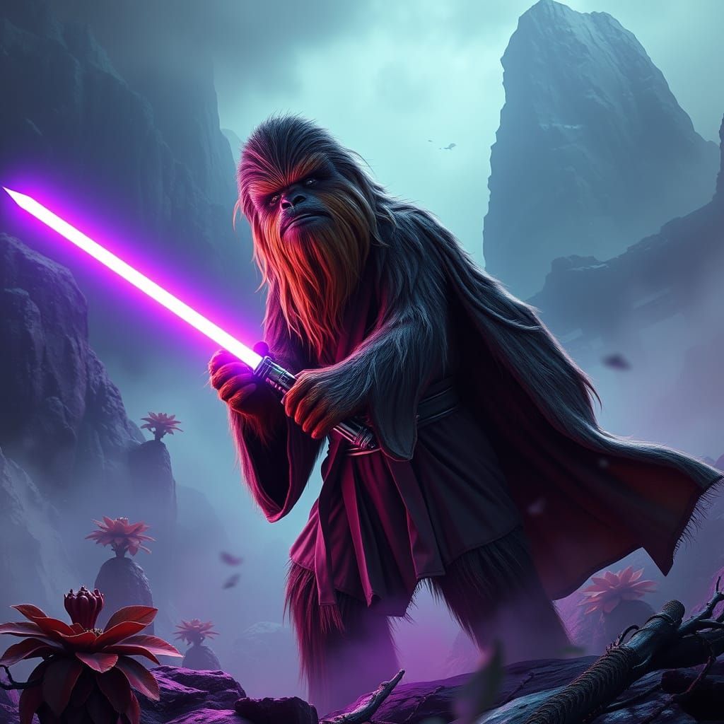 Generate unique Wookiee Jedi images with a purple lightsaber using our free AI tool. Easy and fast!