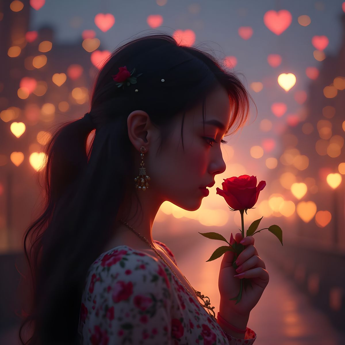 This image captures a complex mix of emotions, depicting birthday joy intertwined with underlying feelings of unease and hidden sadness, focusing on love and beauty.