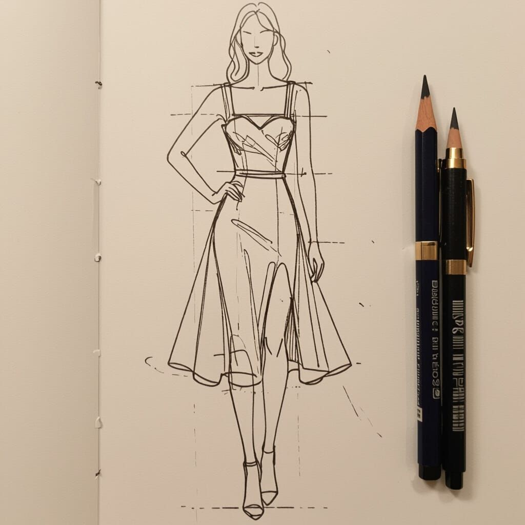 This image features a minimalist line art sketch of a dress, showcasing simple yet elegant design outlines.