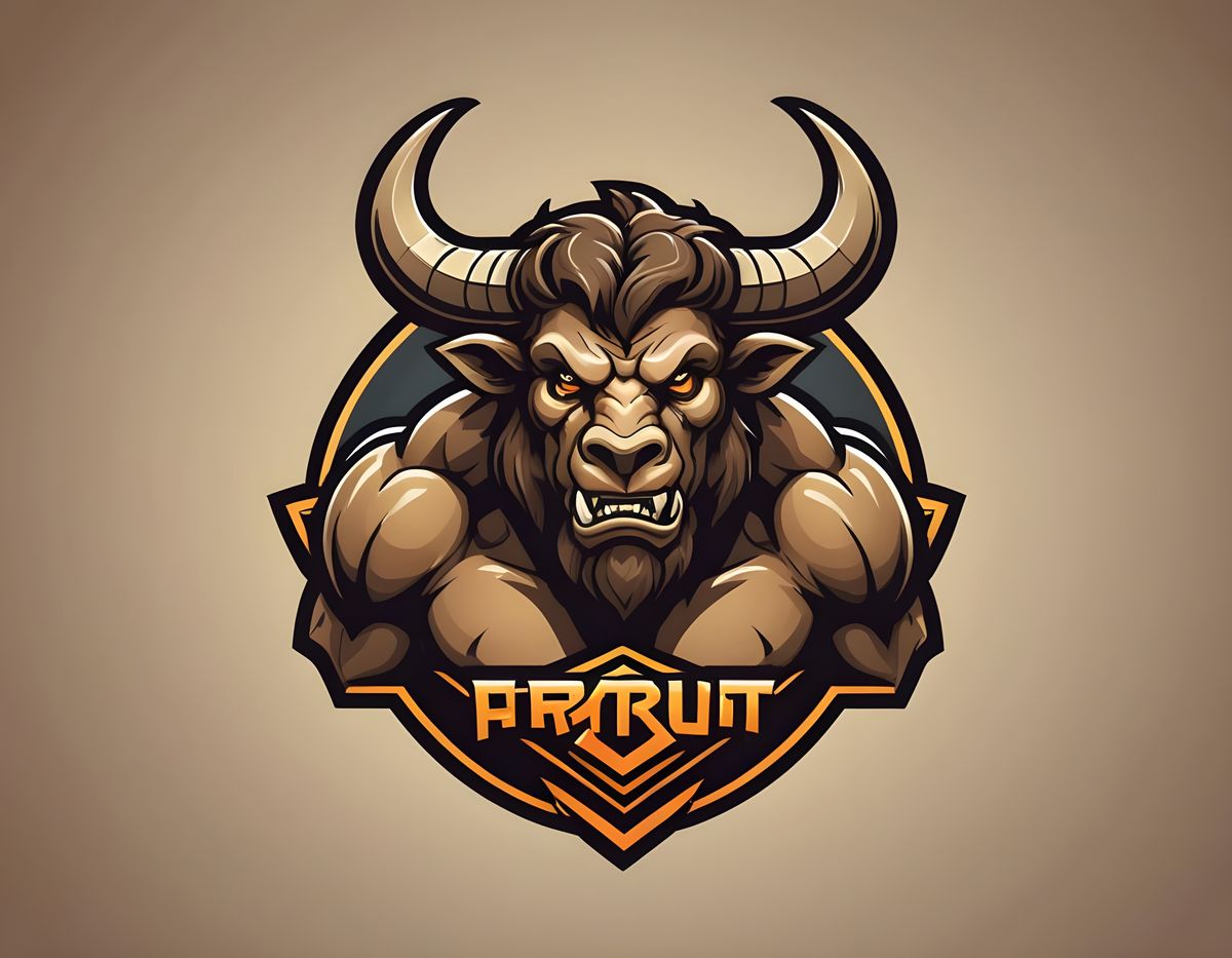 This image shows a stylized Minotaur mascot designed for an esports logo, created using vector illustration techniques for a modern and dynamic look.