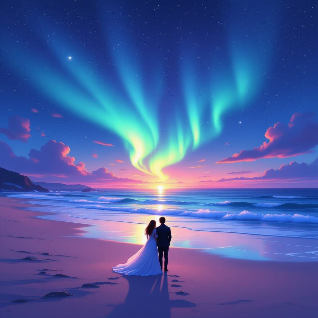 Generate your own stunning images of beaches, northern lights, and romantic moments with our free AI tool. Easy and fun!