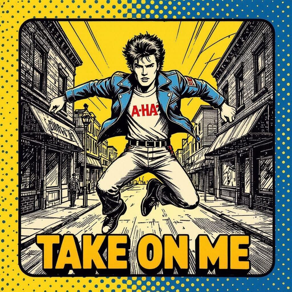 Design your own vintage 80s band trading cards, inspired by iconic songs like 'Take On Me'. Free and easy AI image generation.