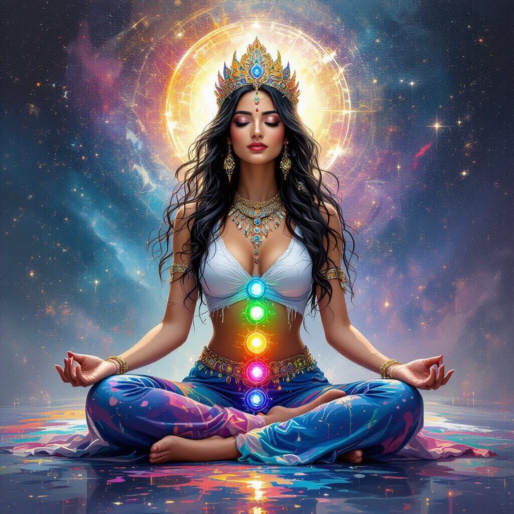Unleash your inner goddess with our AI image generator. Create your own stunning chakra-themed art for free!