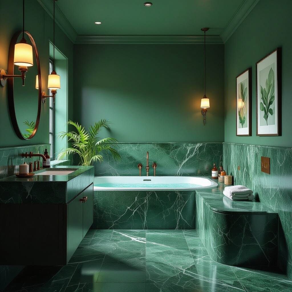 Easily generate your own unique dark green bathroom designs with our flexible AI tool. It's free and simple to use!