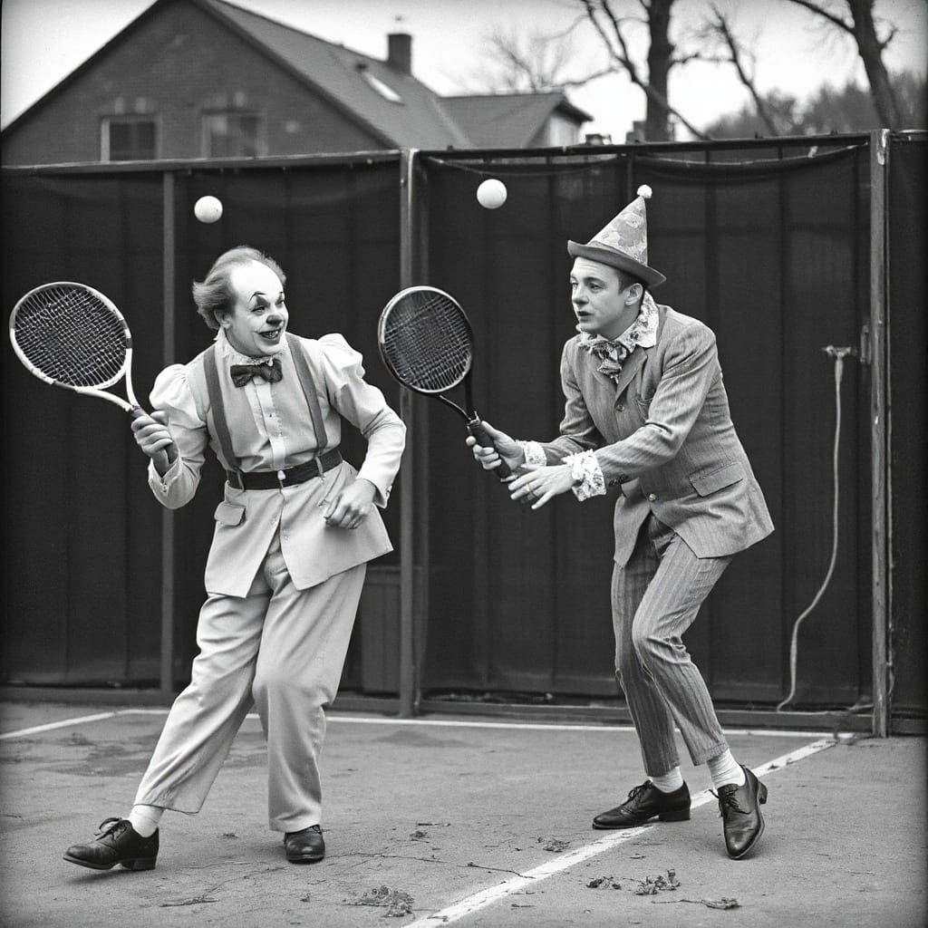 Create your own vintage-style photographs of clowns playing tennis with our free AI image generator. It's easy and fun!