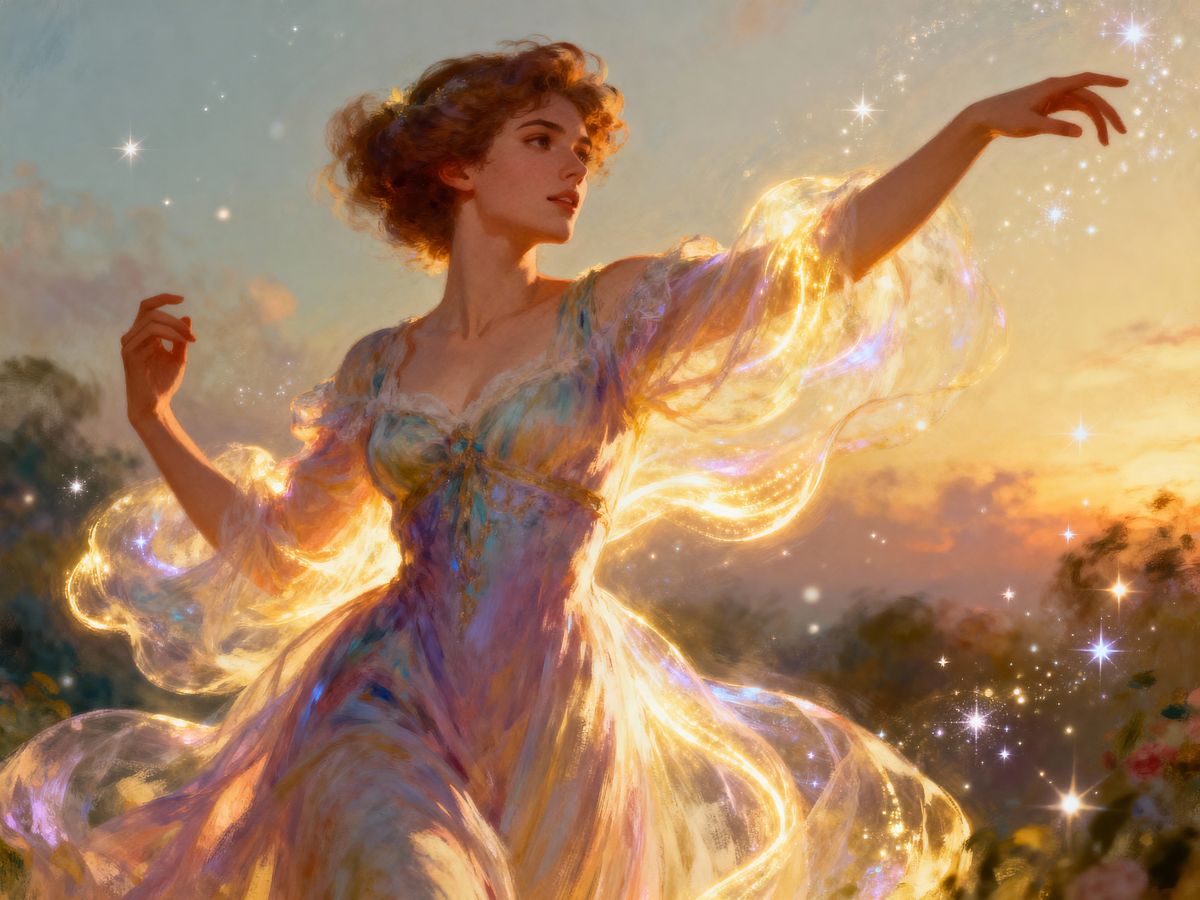This AI-generated image features comic characters with hyper-detailed, vibrant colors in a dreamy, surreal style. It evokes an ethereal, romantic atmosphere with atmospheric rendering.