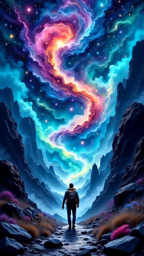 This image captures the essence of the creative process, emphasizing the journey over the outcome. Rendered with wet watercolor and collage techniques, it evokes a sense of spiritual intensity.