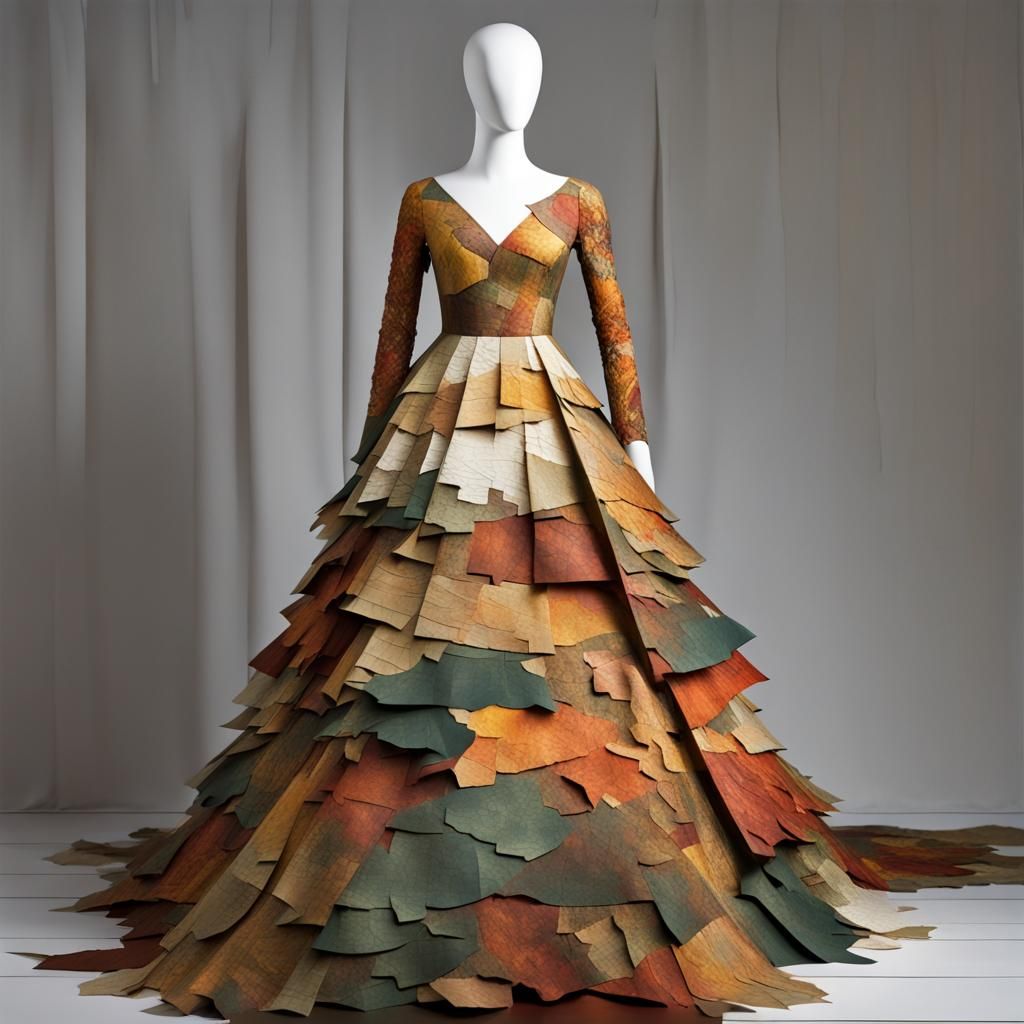 Rustic Paper Collage Ballgown - Autumn Color Palette
