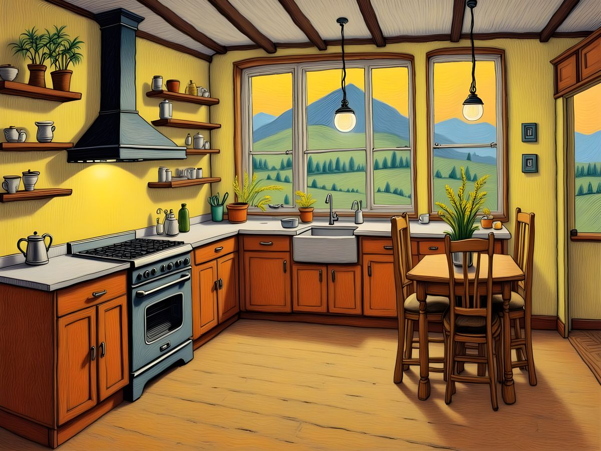 Easily create custom country kitchen images with our free AI image generator. No design experience needed!
