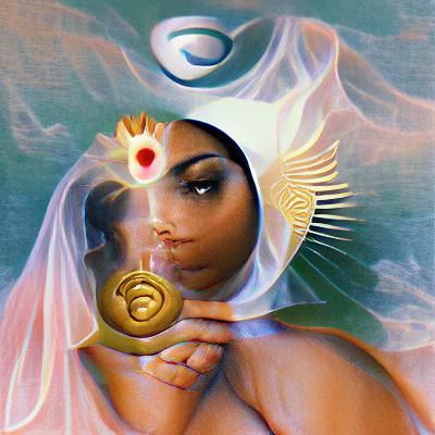 This image shows a concept of the divine feminine. It is a conceptual artwork representing feminine power, strength, and spirituality through abstract and symbolic imagery.