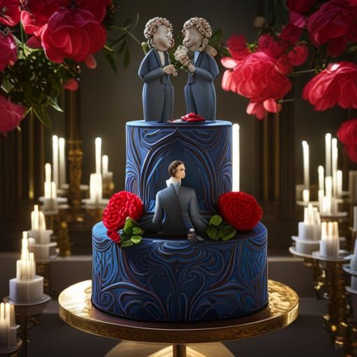 Design your own unique gothic wedding cake for a gay couple with our free AI image generator. It's easy and fun!