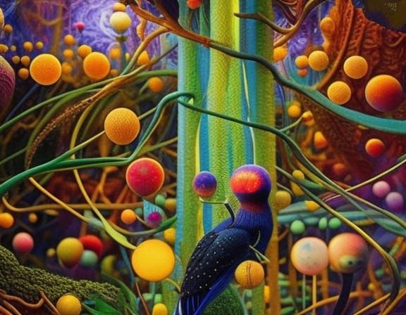 be careful, if fly around I will catch on Venus flytrap platform with rotating sphere in motion trapped in mycelium network, in warped perspective with forest exposure, Amanda Sage, Ernst Haeckel, dynamic, rich colors, highly deeply detailed, clear sharp edges, amazing depth, sharp focus, 8k, octane ...