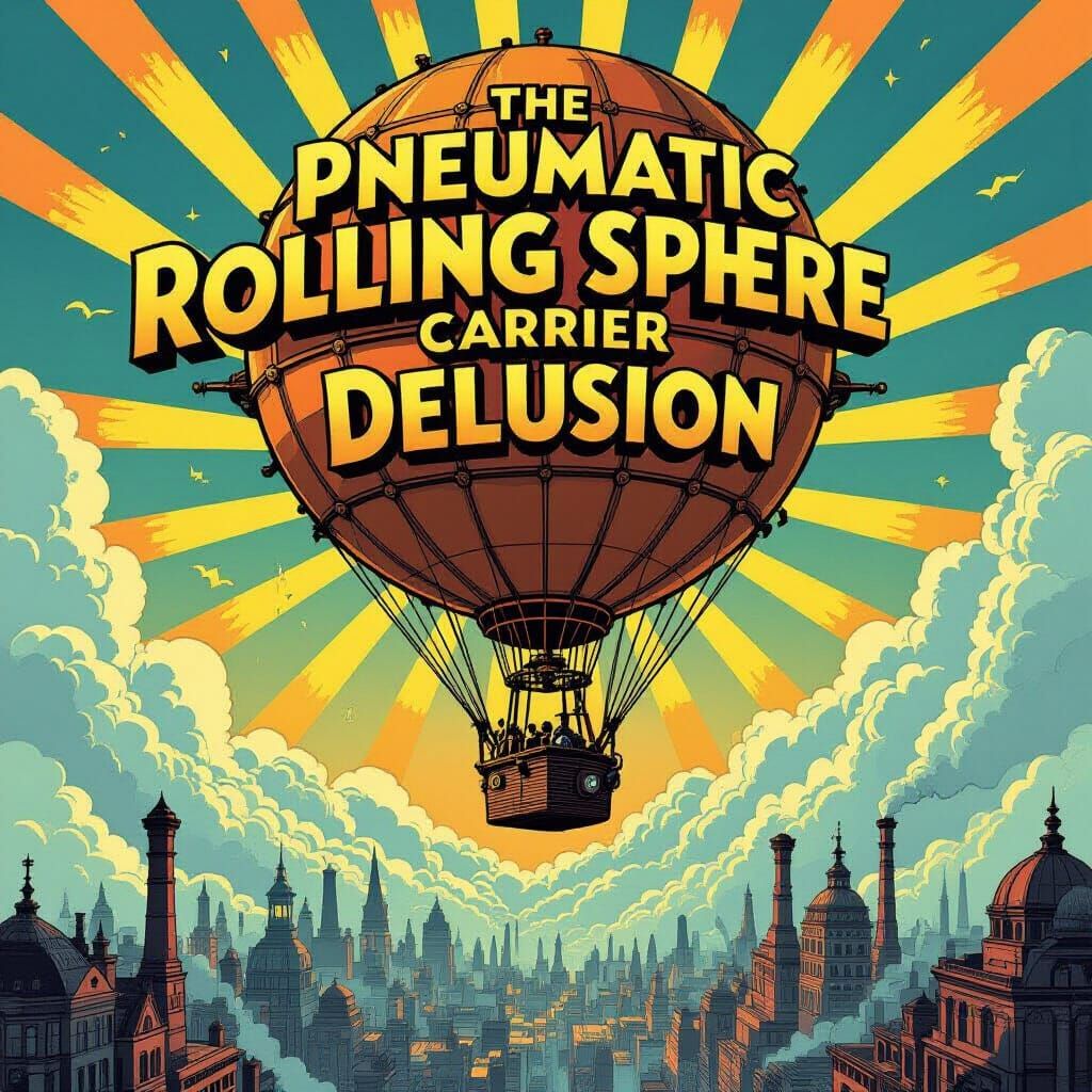 A dynamic comic book cover illustration featuring a retro-futuristic, steampunk sphere-shaped hot air balloon over a Victorian industrial city. Rendered with dramatic lighting and vivid colors.
