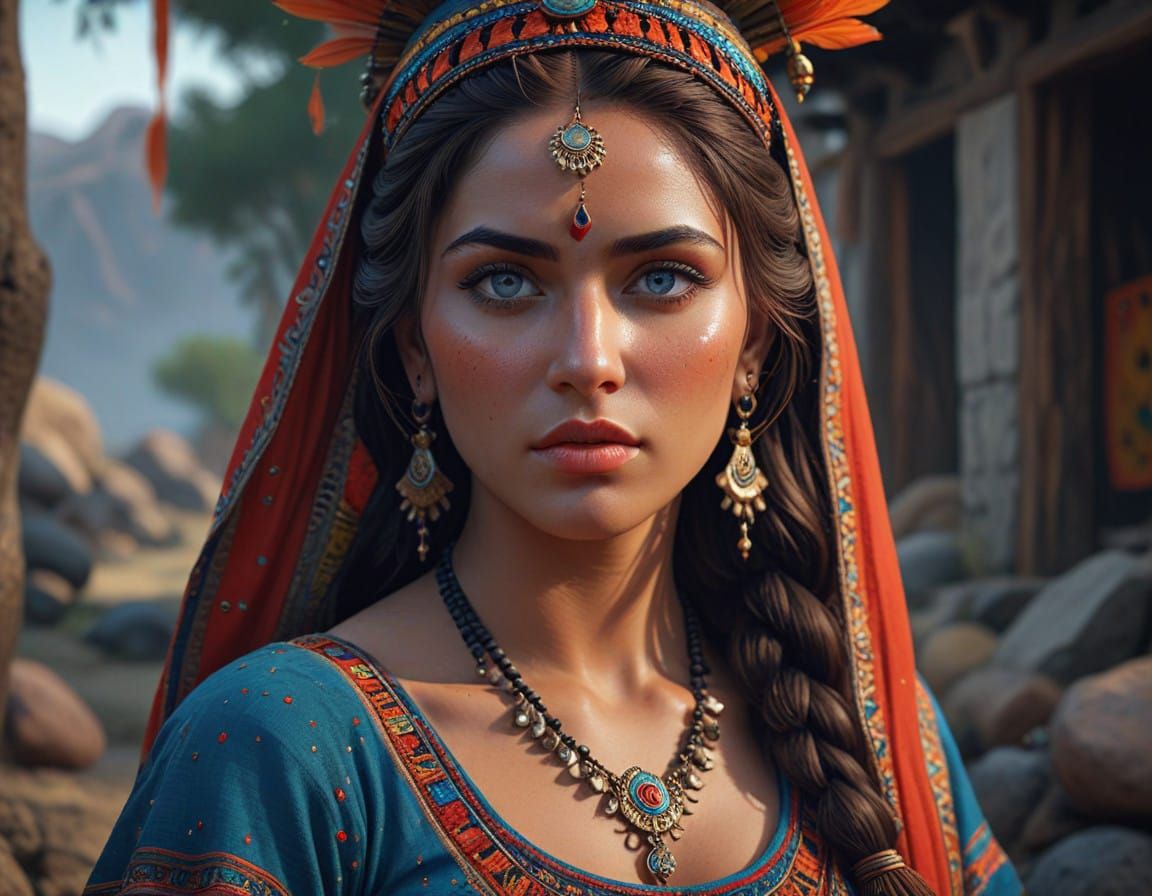 detailed matte painting, deep color, fantastical, intricate detail, splash screen, complementary colors, fantasy concept art, 8k resolution trending on Artstation Unreal Engine 5, Indo-Greek Kalash people
