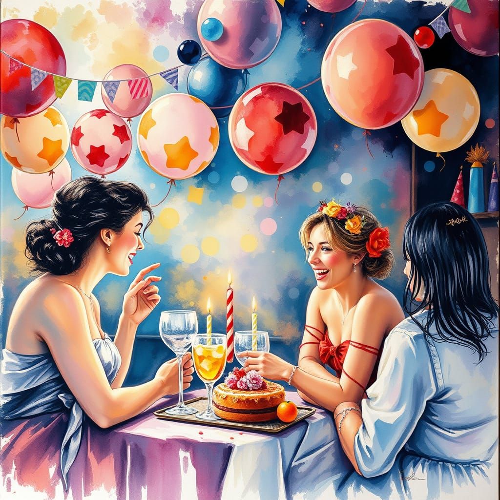 This stunning image features a vibrant birthday scene with exquisite charcoal outlines, intricate gouache details, and thick impasto brush strokes, reminiscent of Impressionist masters like Sargent and Sorolla.