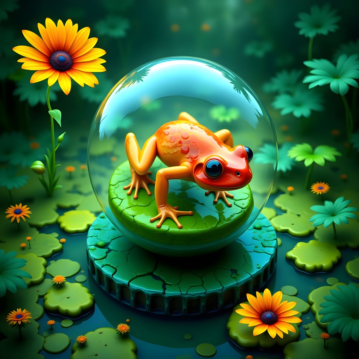 Unleash your creativity and design unique frog and flower images with our free AI image generator