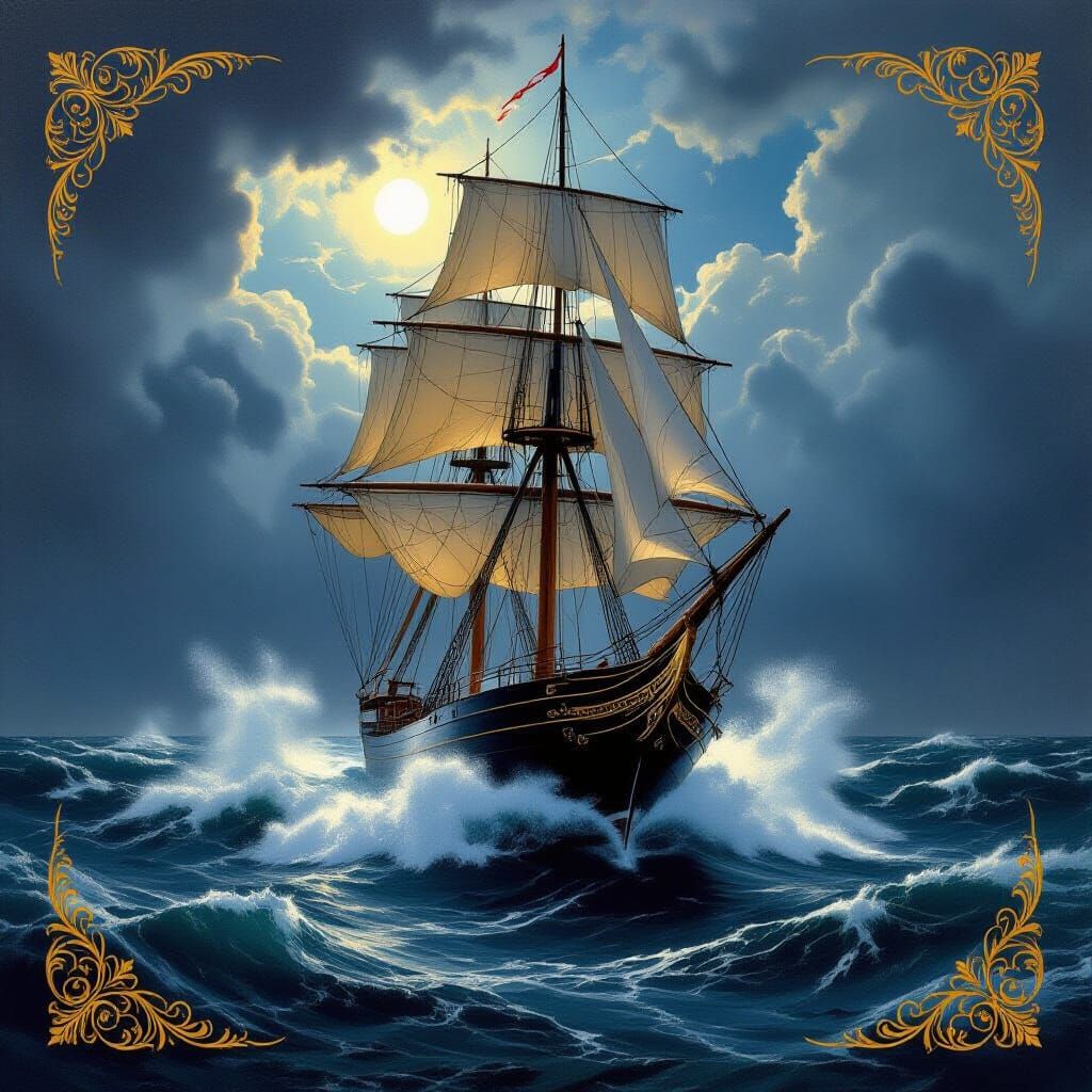 Easily create your own dramatic sailing ship images with our free AI image generator.