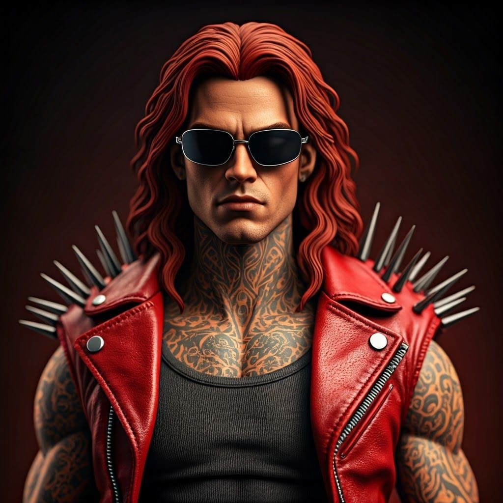 This image showcases a dynamic action figure in a gritty cyberpunk aesthetic, inspired by comic book style and cinematic flair, with bold lines, vibrant colors, and intricate details, set against a dramatic and intense backdrop.