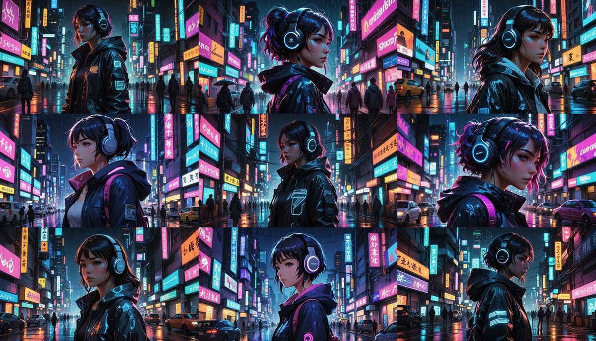 Design your own anime cyberpunk characters with headphones and city night scenes. Free and easy AI image generation.