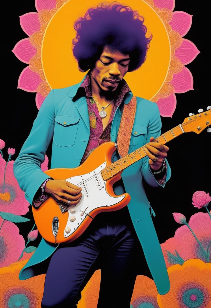 Make unique Jimi Hendrix concert posters and psychedelic art with our free AI generator. Easy and fast!