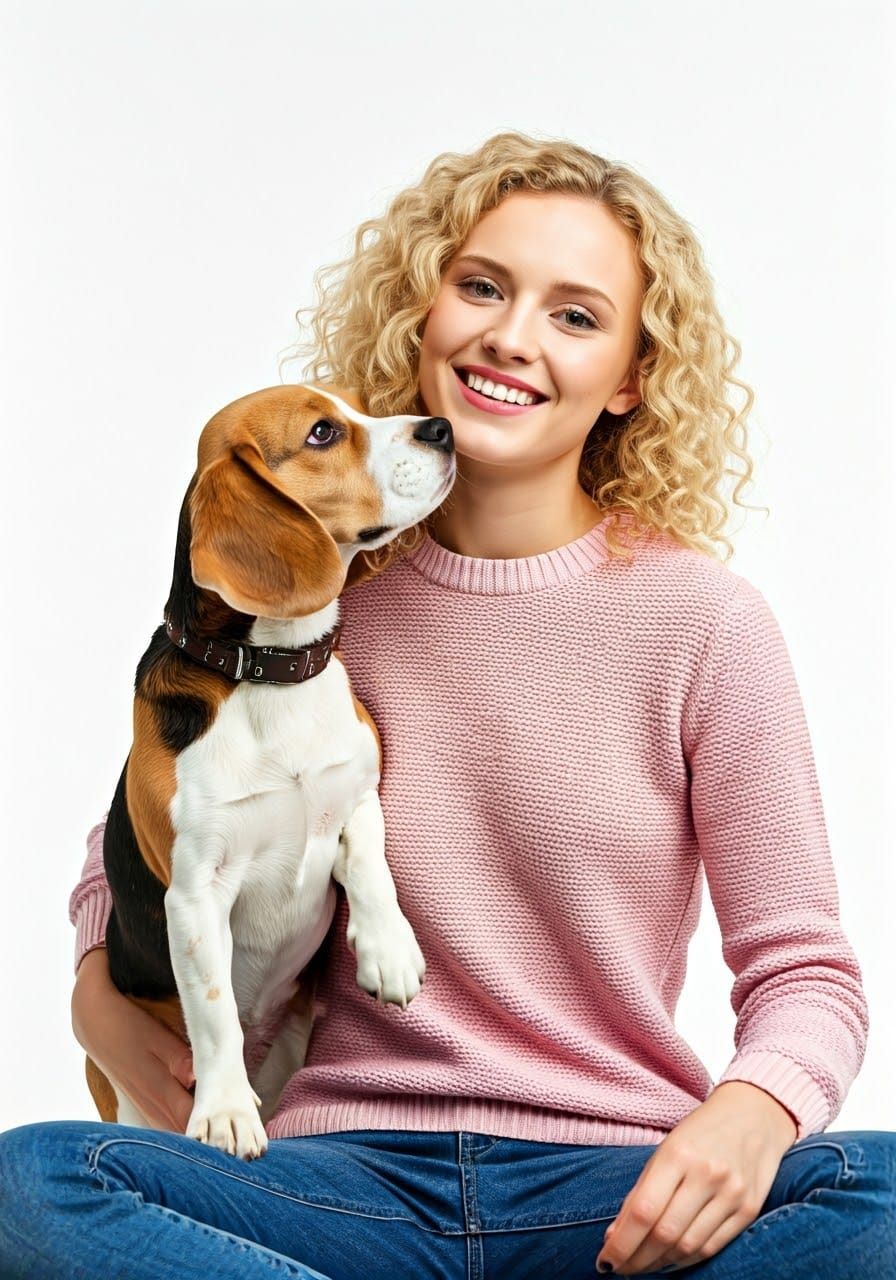 This heartwarming image captures a young girl surrounded by tender companionship as a beagle nuzzles her shoulder, evoking the softness and warmth of classic sentimental portraits and observational photography.