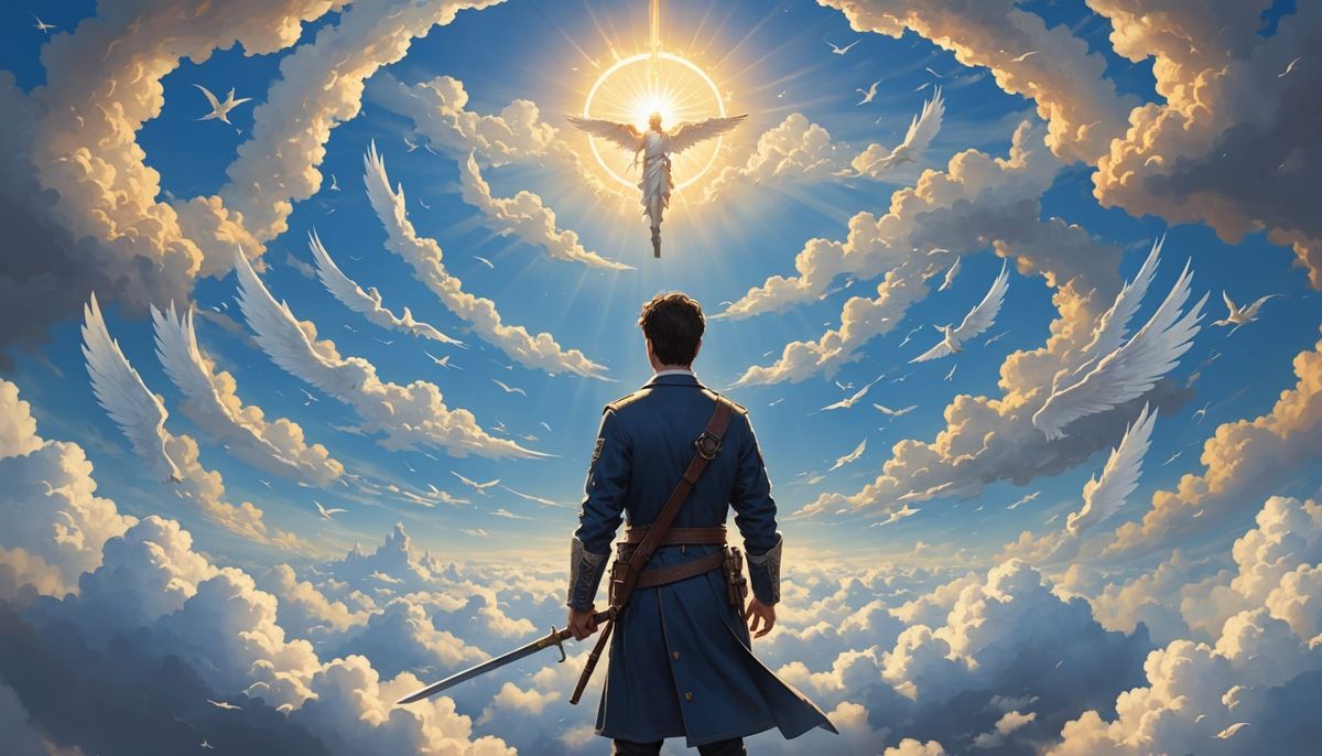 This image depicts a serene and idyllic scene of a heavenly realm, evoking feelings of peace and tranquility.