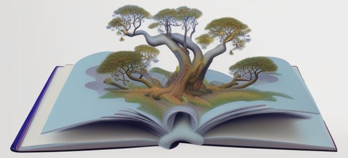 a open pop out book with a cute paper monster , and poping out from the book and ladder on the trees and grasses, by Ivan Shishkin,Ferdinand Knab,Dan Seagrave,Erik Johansson. beautiful, high detail, ultra detailed, high definition, award winning colourful, 3D. pixar. minimalist photorealistic
