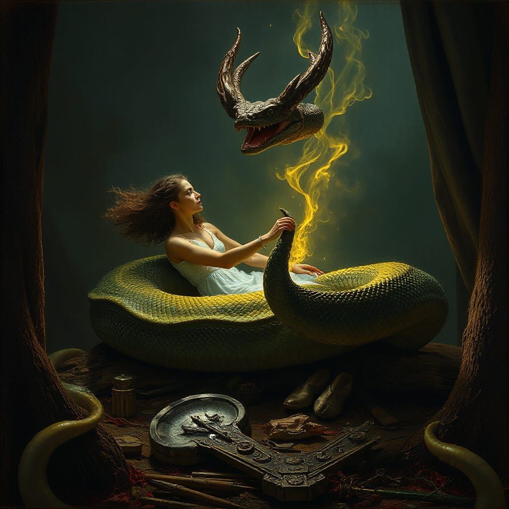 Unleash your imagination and bring your own ethereal serpent nightmares to life for free with our AI image generator!