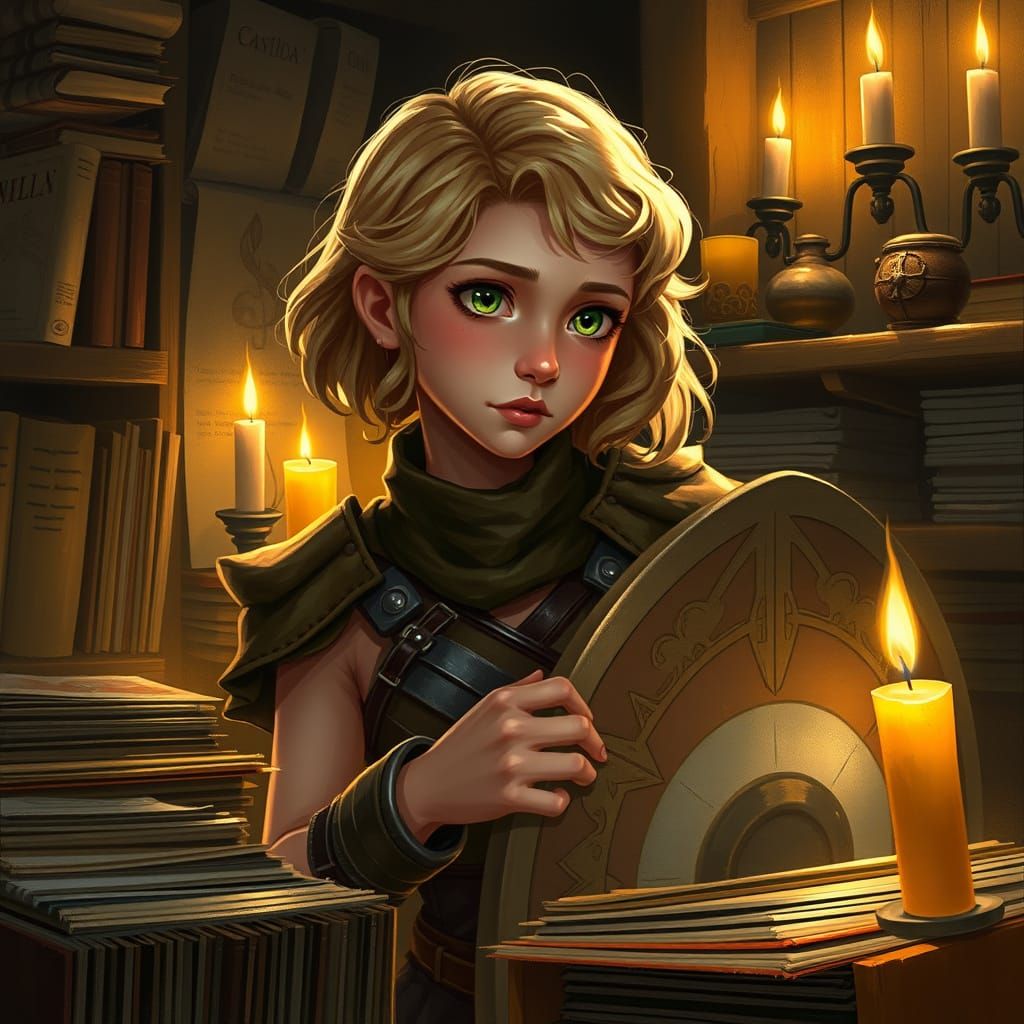 This image shows a young woman surrounded by vinyl records, lost in nostalgic thought. Warm lighting and a mix of digital and traditional textures create a dreamy atmosphere.
