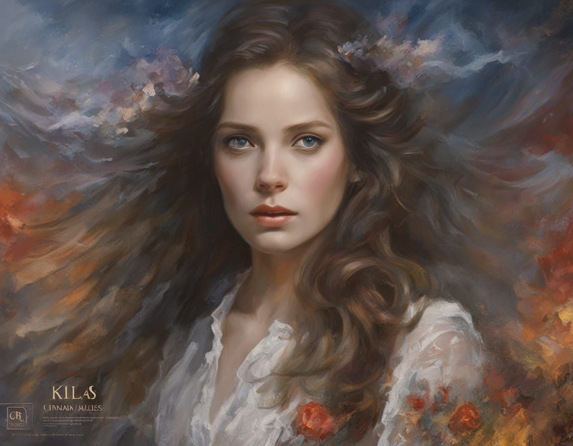 A hyperrealistic, highly detailed matte painting of Sarah Miles in a 1973 movie poster style. Features a dreamy grunge fantasy aesthetic with impasto and chalk art elements, high contrast, and atmospheric cinematic qualities.
