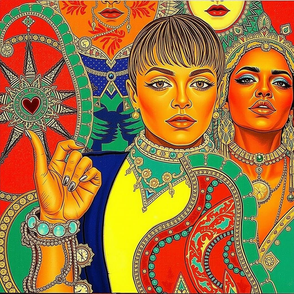This image showcases a lavishly detailed masterpiece with a focus on intense, vivid colors and maximalist elegance, creating a truly stunning visual experience.