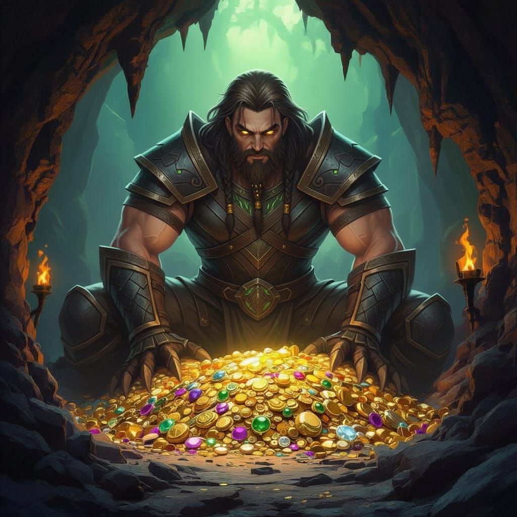 Generate your own fantasy images of dragons guarding treasure, easily and for free with our AI generator.