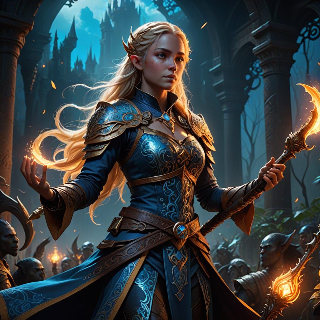Easily generate your own fantasy characters, like this half-elf bard, with our free AI image generator