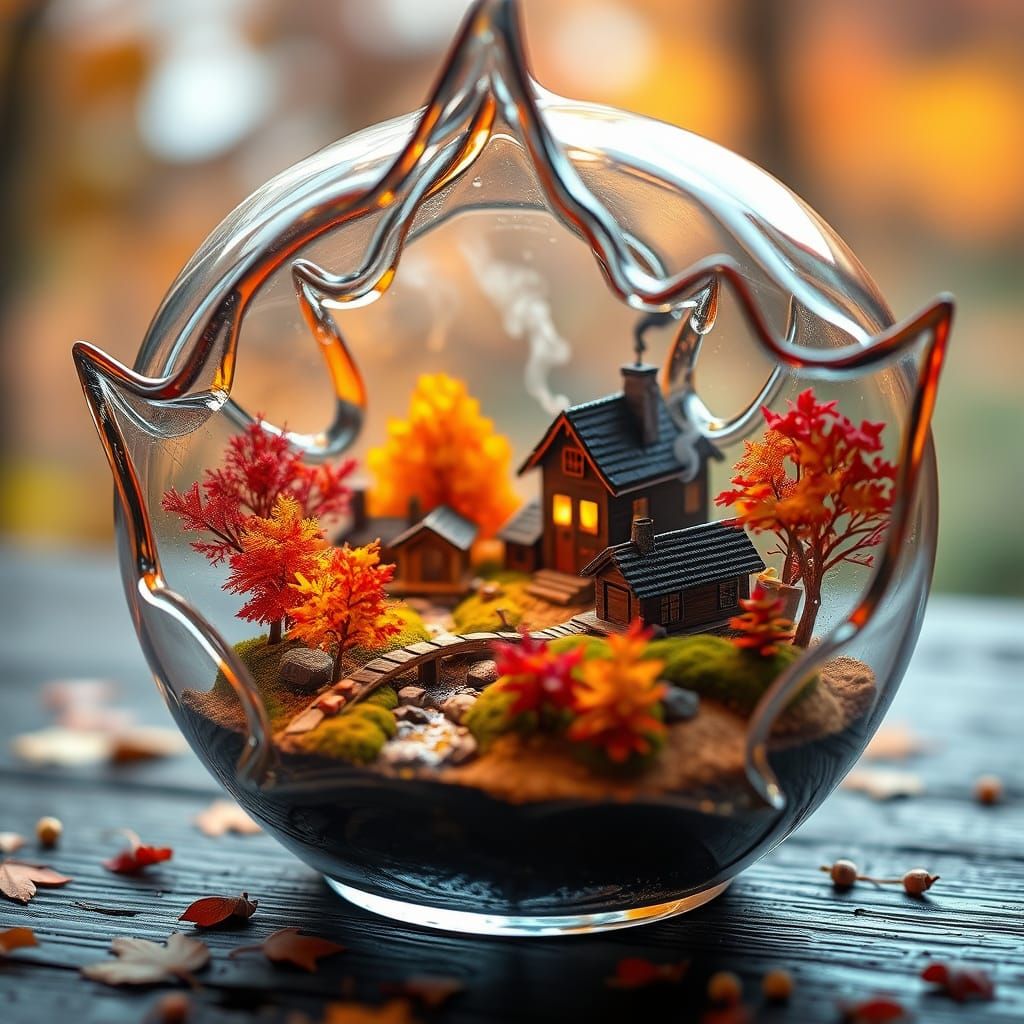 Craft your own miniature autumn villages inside vintage glass with our free AI generator. Easy and fun!