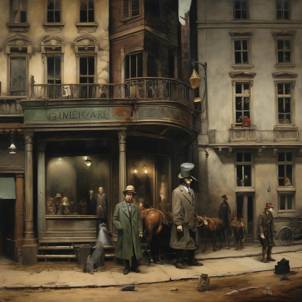 This image embodies a grimdark atmosphere. It's reminiscent of realist paintings with detailed figures and dramatic lighting, creating a dark and unsettling mood.