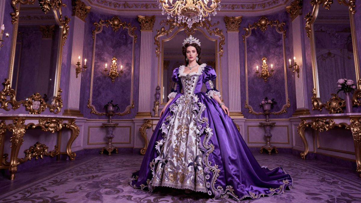 This image showcases opulent Baroque style with a dominant purple color palette. Experience rich textures and dramatic lighting in this visually striking scene.