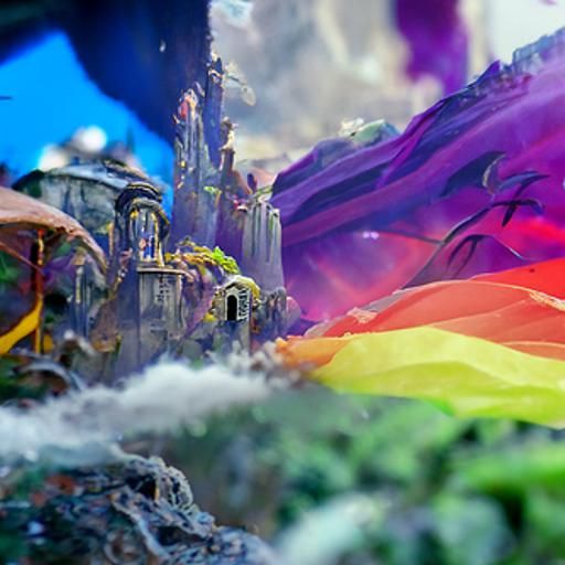 This image shows a vibrant, detailed matte painting representing LGBTQIA+ themes. The artwork features deep colors, intricate details, and a fantastical concept art style in 8k resolution.