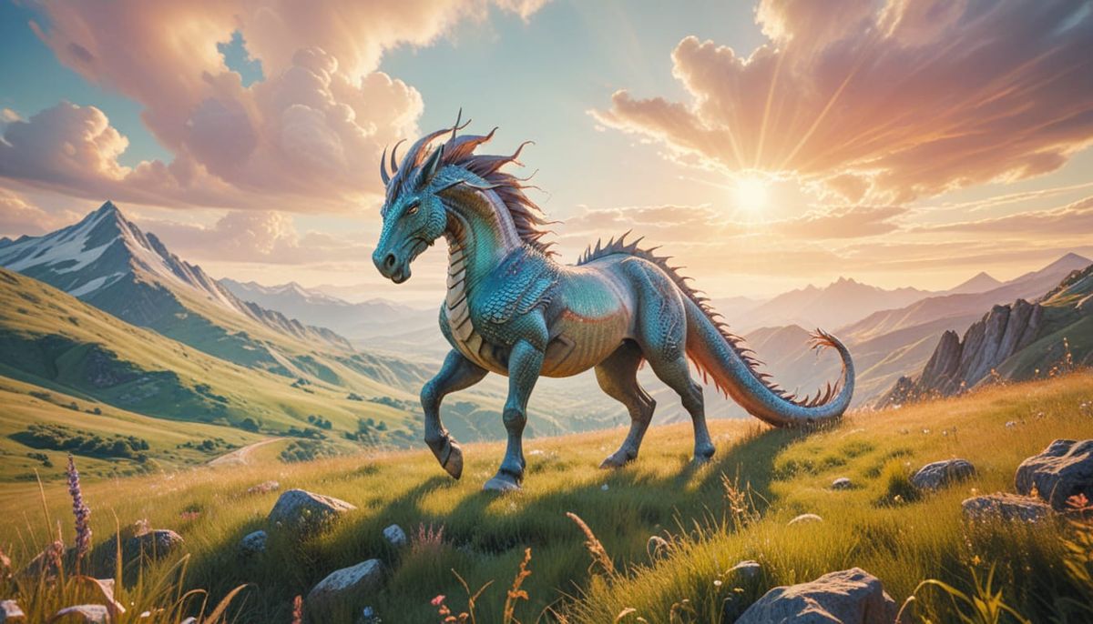 Create your own fantastical horse dragon images with our free AI image generator. It's easy and fun!