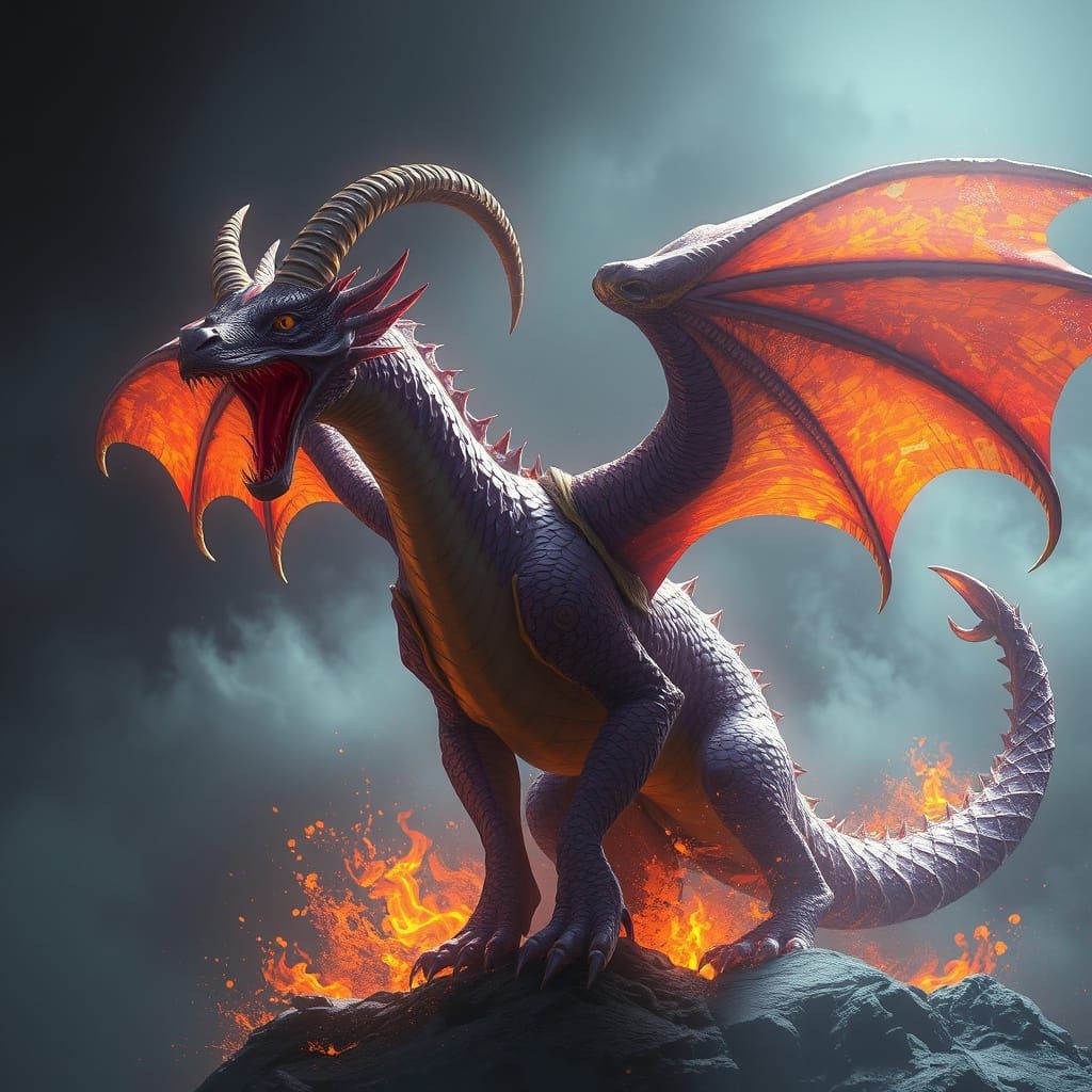 A majestic dragon emerges from Slavic mythology, blending animal forms with ancient magic. This dark fantasy artwork showcases intricate details, dynamic lighting, and a rich color palette, evoking a sense of mysticism and power.