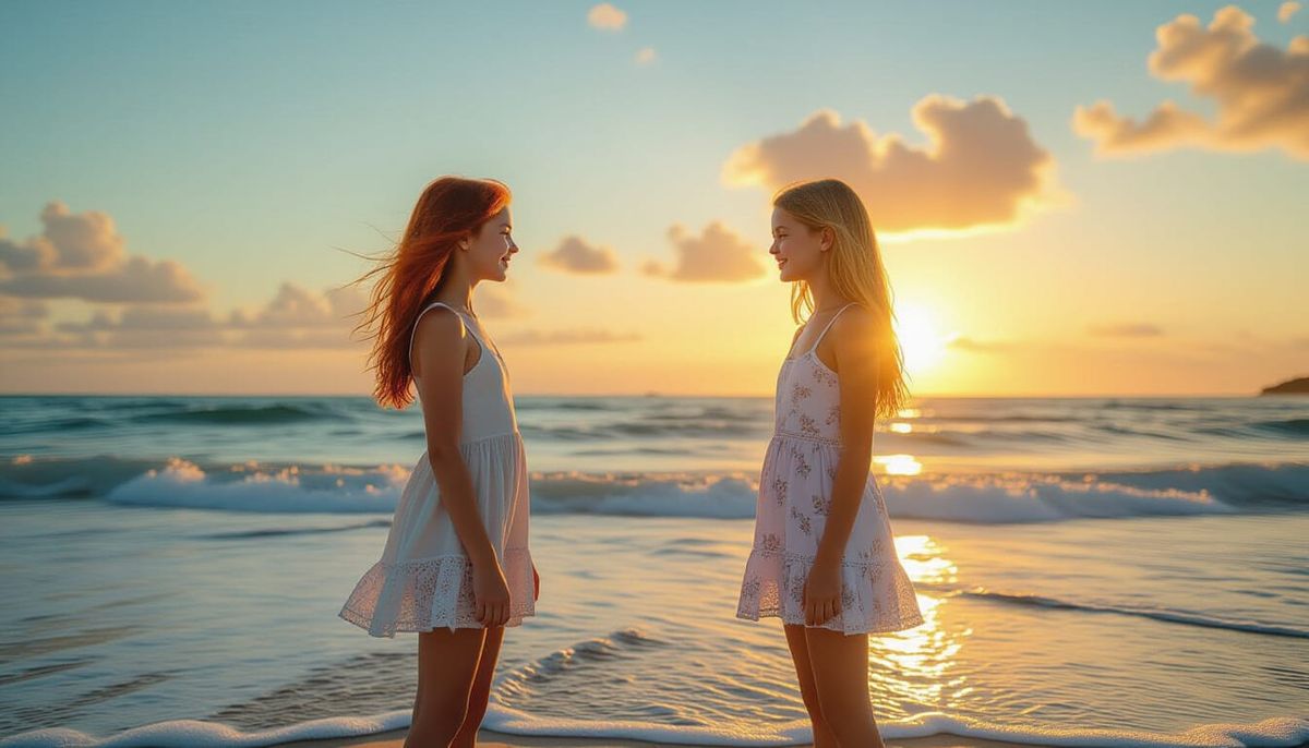 Generate your own unique beach images with AI. Easily create custom pictures of girls playing at the beach.