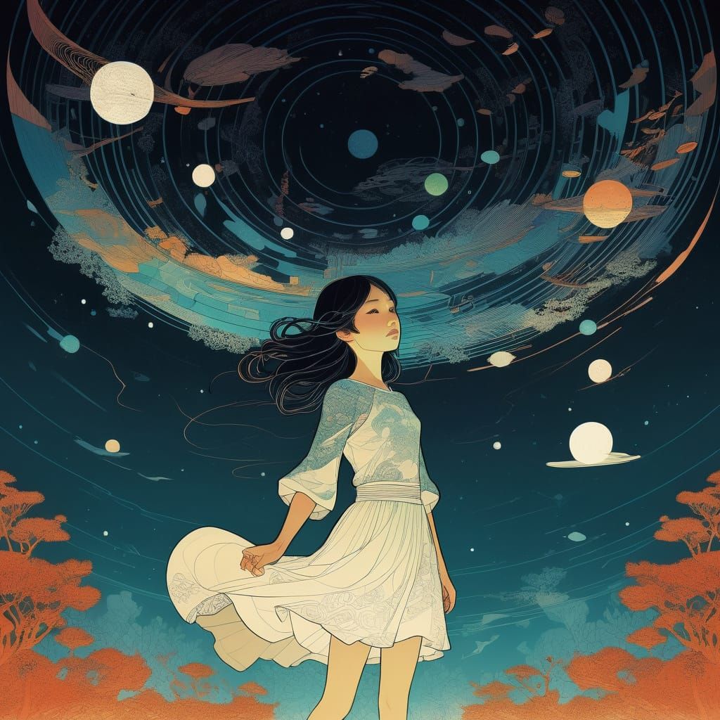 This image captures the mystery of Aether, exploring the allure of hidden depths. Created in a distinctive art style blending influences from contemporary illustrators.