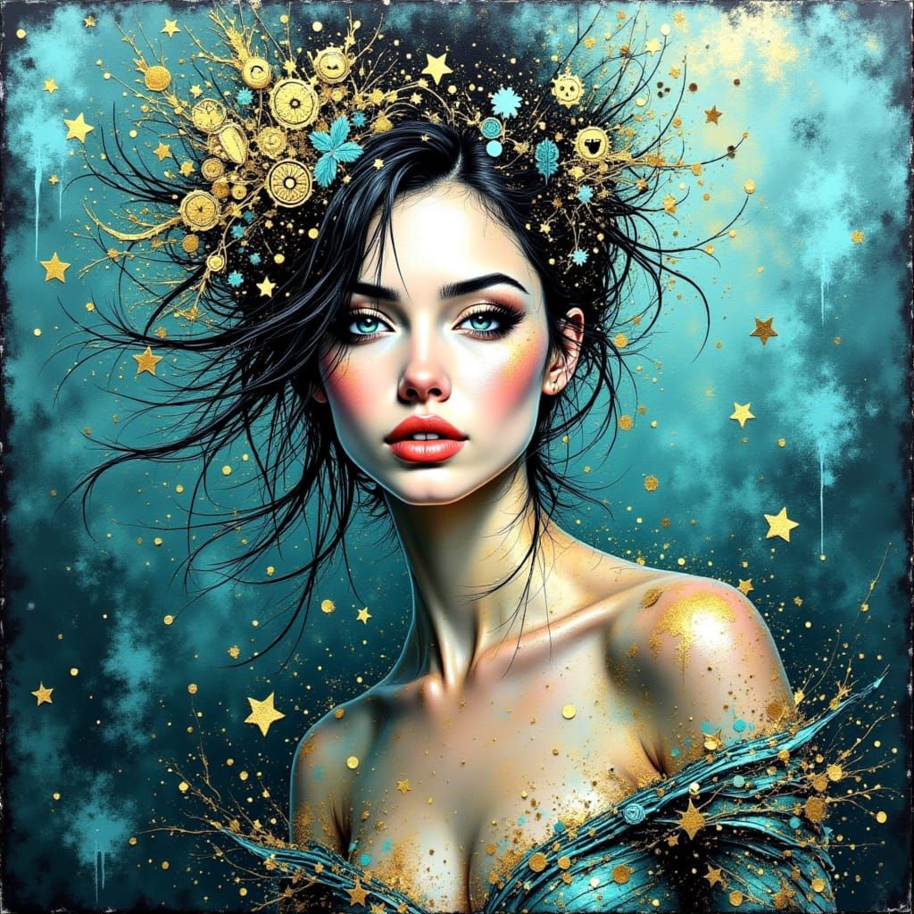 Easily design your own Art Nouveau-inspired ocean goddess images with our free AI art generator, featuring beautiful silver, teal, and aqua hues.