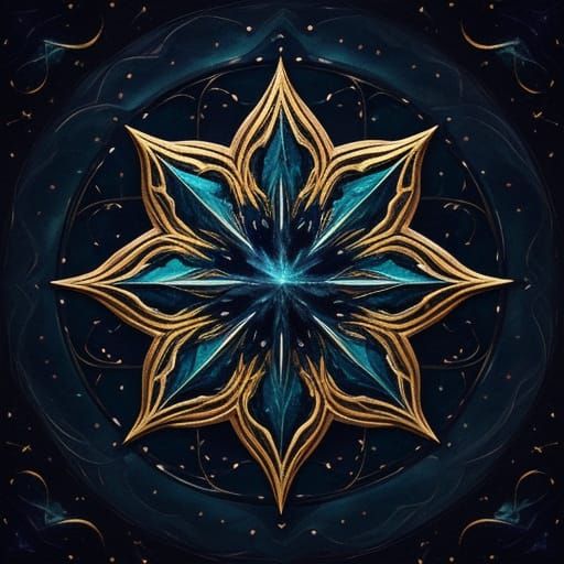 This image shows a wooden star shape adorned with blackberries. Swirling patterns of dark blue and gold with teal accents create a vibrant, fantasy art style as 3d rendered digital art.