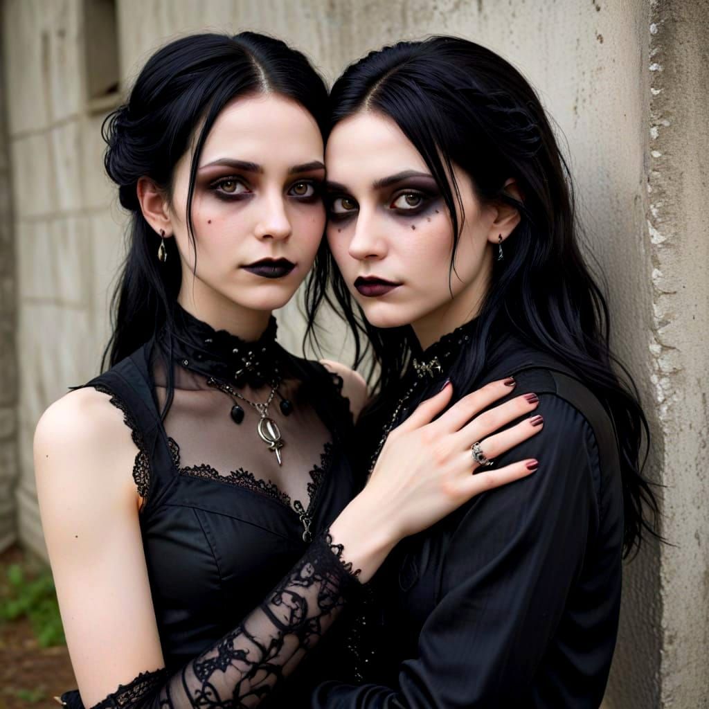 This image shows a tender moment of reconciliation between a goth teenager and her mother, embracing each other warmly. The scene is depicted in a style reminiscent of contemporary emotional realism.
