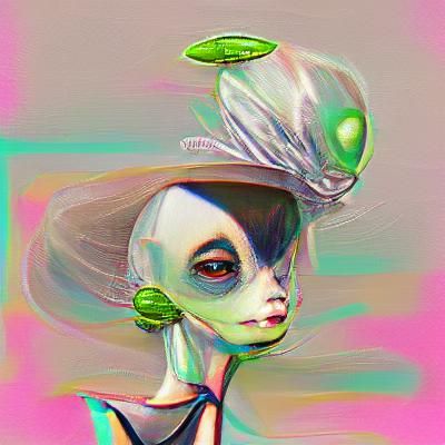 This image shows an alien woman with otherworldly features. The portrait captures a sense of mystery and beauty, highlighting the unique characteristics of the subject.