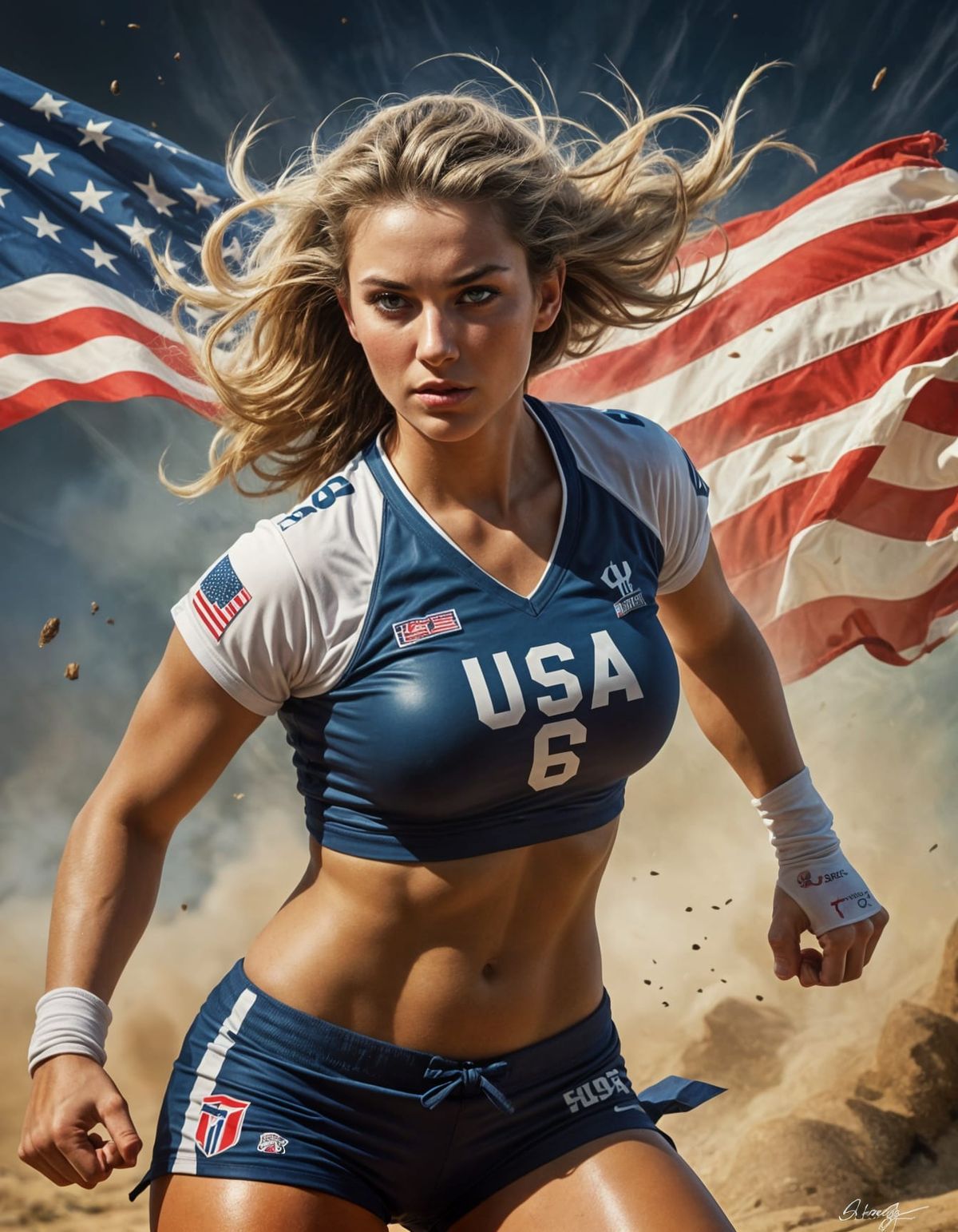Design unique USA Volleyball posters with our free and easy-to-use AI image generator. Get creative now!