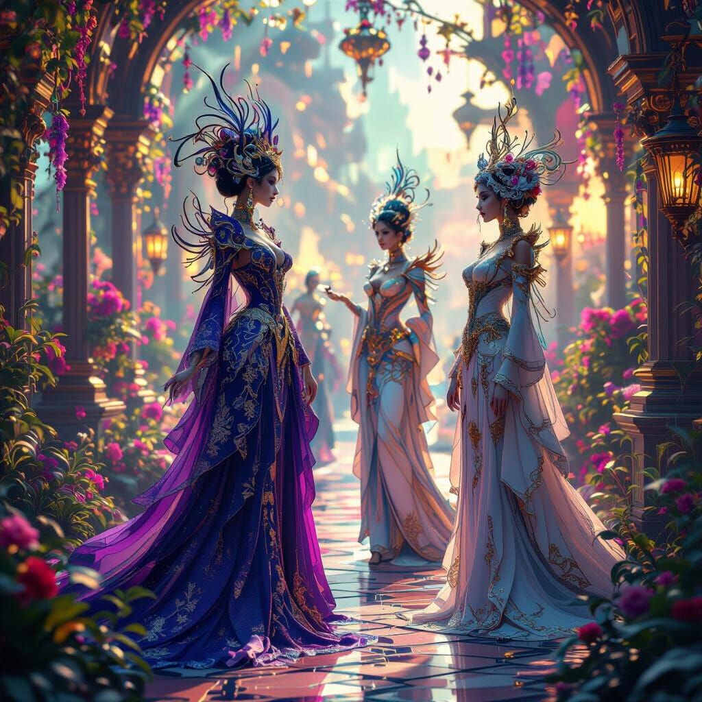 This image showcases extraordinary, elegant magical beings in a supernatural realm. Rendered in a stunning 3D style, it features intricate details, vivid colors, and dramatic lighting for an enchanting atmosphere.