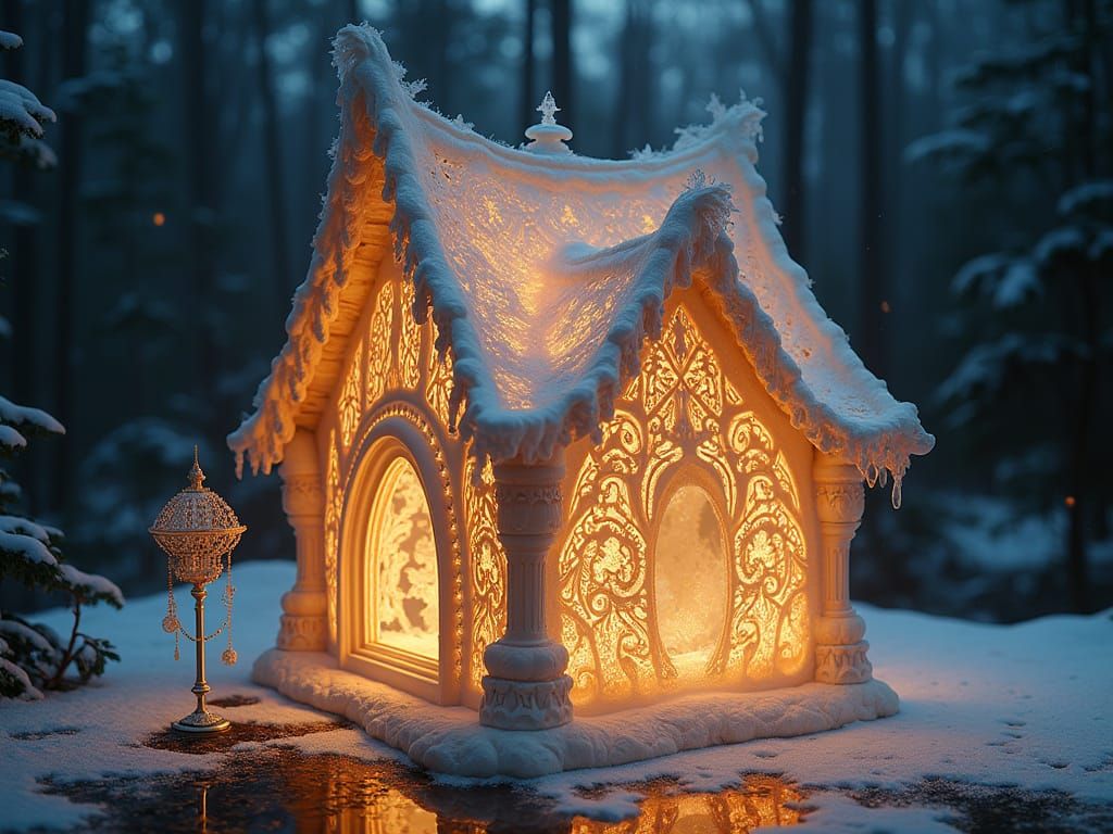 glowing ice on fire antique lace fairytale ice on fire lantern in mirrored outdoor funhouse by sculptural artist "gypsum lacework" by sculptural artist "sublimascious whitework" by conceptual architect "concrete lace" by artist "glowing architectural fragment" intricate beautiful hyperdetailed complex ...