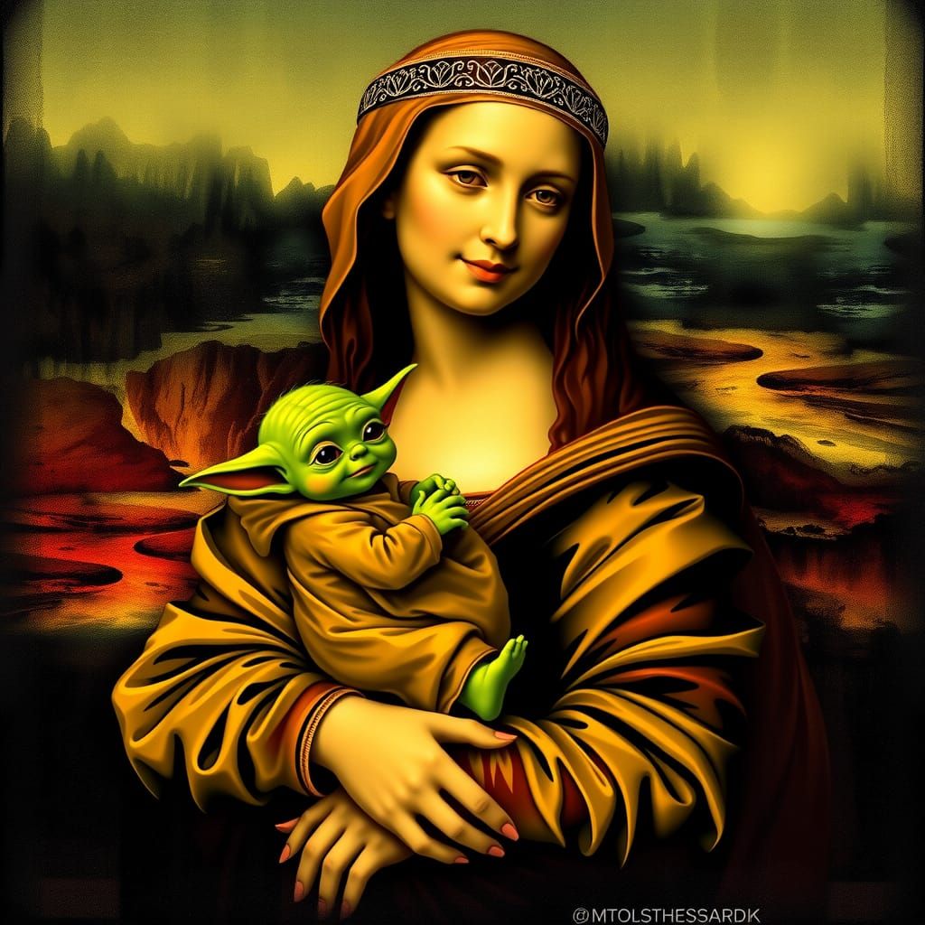 Get creative with our free AI image generator. Easily make your own Mona Lisa with Baby Yoda